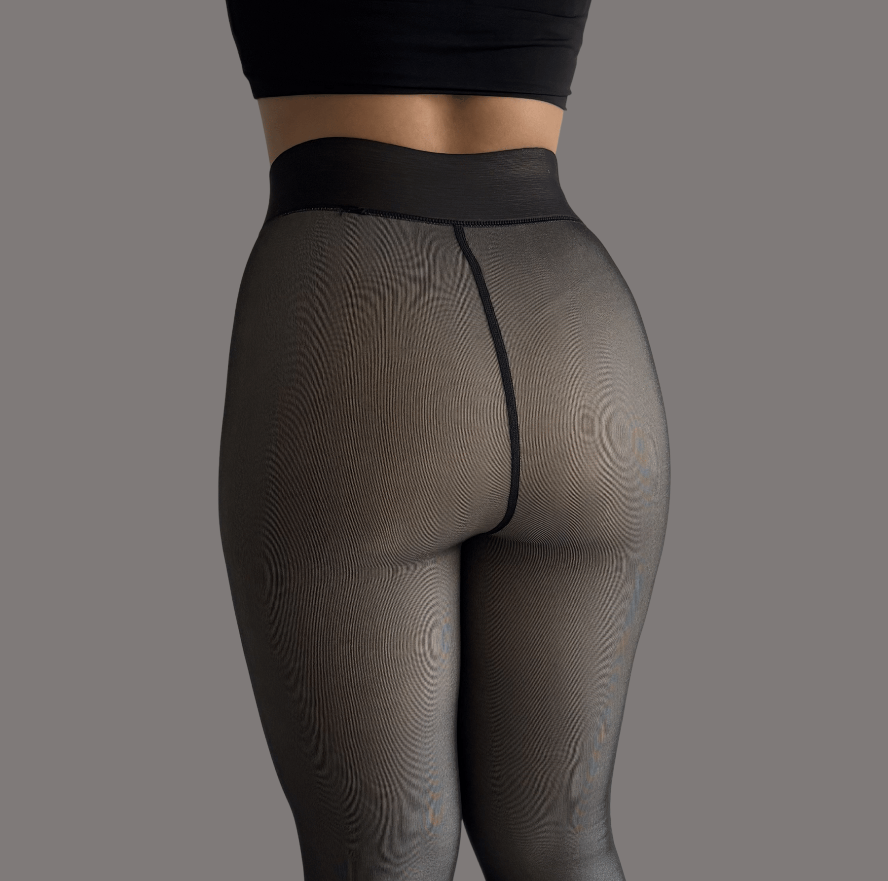 These give that sheer-tights vibe but feel secretly cozy inside. The waistband sits flat, no digging, and they don’t go shiny under indoor lighting. Perfect for throwing on with an oversized crewneck when it’s cool out.